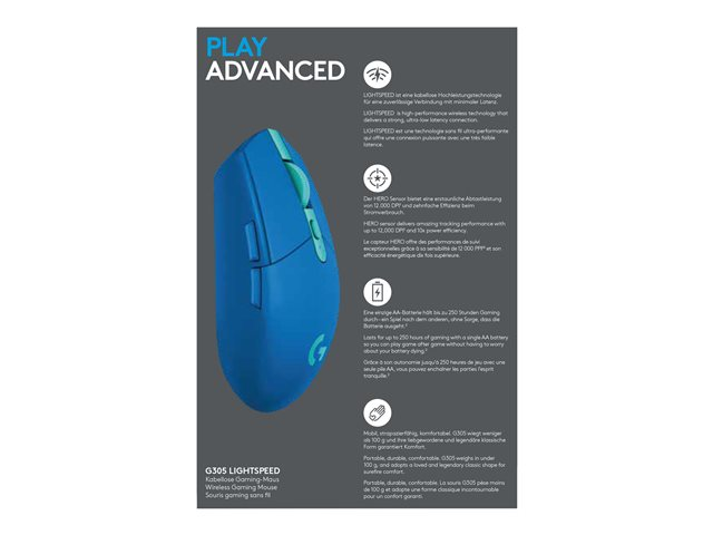 Logitech G G305 - Hiiri - optinen - 6 painiketta - langaton - 2.4 GHz - USB johdoton vastaanotin - sininen