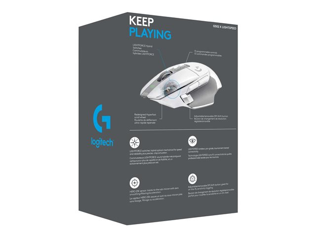 Logitech G G502 X LIGHTSPEED - Hiiri - optinen - 8 painiketta - langaton - 2.4 GHz - USB Logitech LIGHTSPEED -vastaanotin - valkoinen