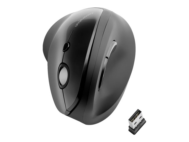Kensington Pro Fit Ergo Vertical Wireless Mouse - Pystyhiiri - ergonominen - oikeakätinen - 6 painiketta - langaton - 2.4 GHz - USB johdoton vastaanotin - musta