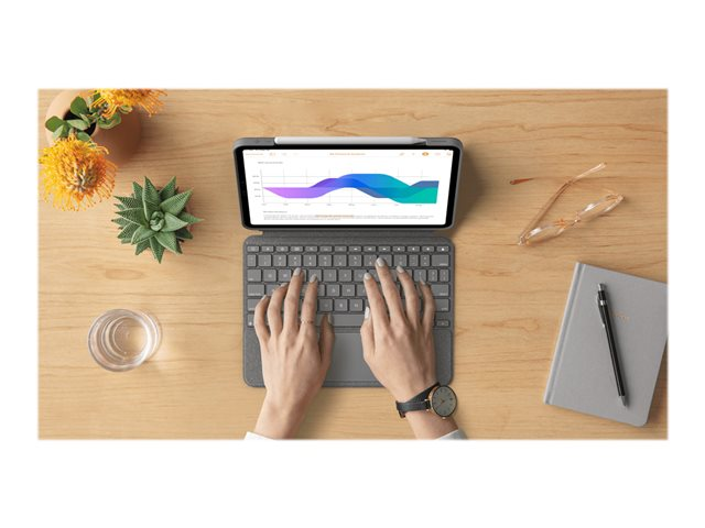 Logitech Combo Touch - Näppäimistö- ja kalvokotelo - sekä kosketuslevy - taustavalaistu - Apple Smart connector - QWERTY - espanjalainen - oxfordinharmaa malleihin Apple 11-inch iPad Pro (1. laitesukupolvi, 2. sukupolvi, 3. sukupolvi) 920-010145