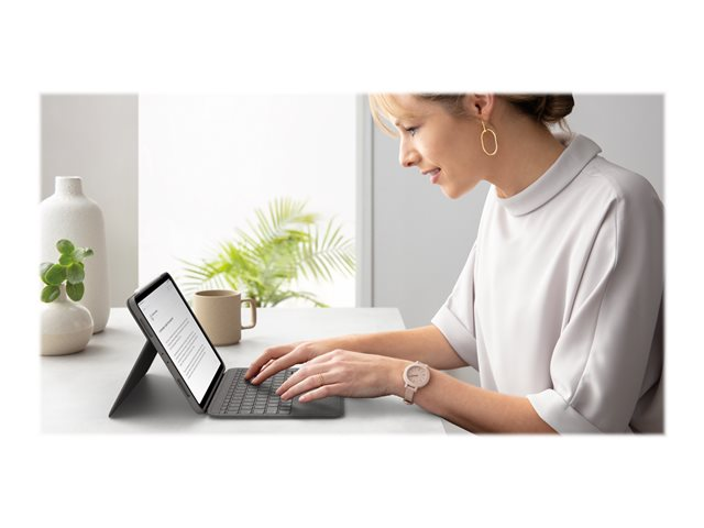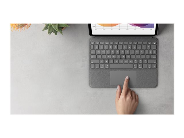 Logitech Folio Touch - Näppäimistö- ja kalvokotelo - sekä kosketuslevy - taustavalaisu - Apple Smart connector - QWERTY - Iso-Britannia - oxfordinharmaa malleihin Apple 10.9-inch iPad Air (4. sukupolvi, 5th generation)