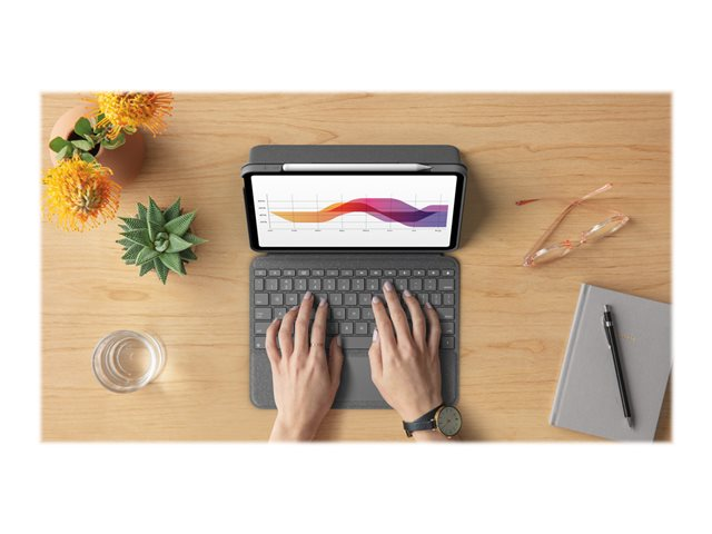 Logitech Folio Touch - Näppäimistö- ja kalvokotelo - sekä kosketuslevy - taustavalaisu - Apple Smart connector - QWERTY - Iso-Britannia - oxfordinharmaa malleihin Apple 10.9-inch iPad Air (4. sukupolvi, 5th generation) 920-009968