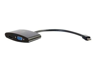 C2G 20cm Mini DisplayPort to HDMI or VGA Adapter Converter 4K UHD - Black - Näyttösovitin - Mini DisplayPort uros to HDMI, 15 pin D-Sub (DB-15) naaras - 20.3 cm - suojattu - musta - 4K-tuki