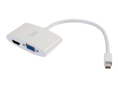 C2G 20cm Mini DisplayPort to HDMI or VGA Adapter Converter 4K UHD - White - Näyttösovitin - Mini DisplayPort uros to HDMI, 15 pin D-Sub (DB-15) naaras - 20.3 cm - suojattu - valkoinen - 4K-tuki
