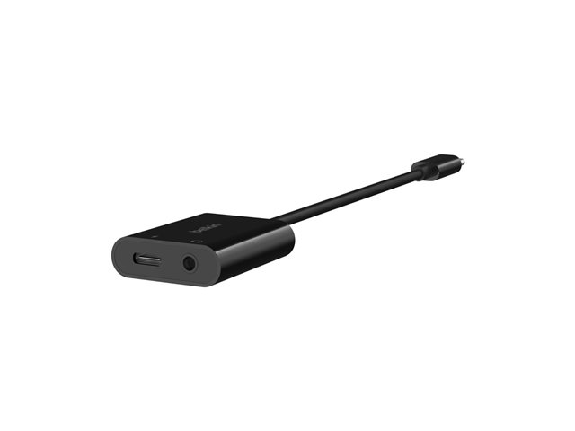 Belkin RockStar - USB-kuuloke-liitäntä / lataussovitin - 24 pin USB-C uros to 24 pin USB-C, mini jack naaras - 19.6 cm - USB Power Delivery (60W) NPA004BTBK