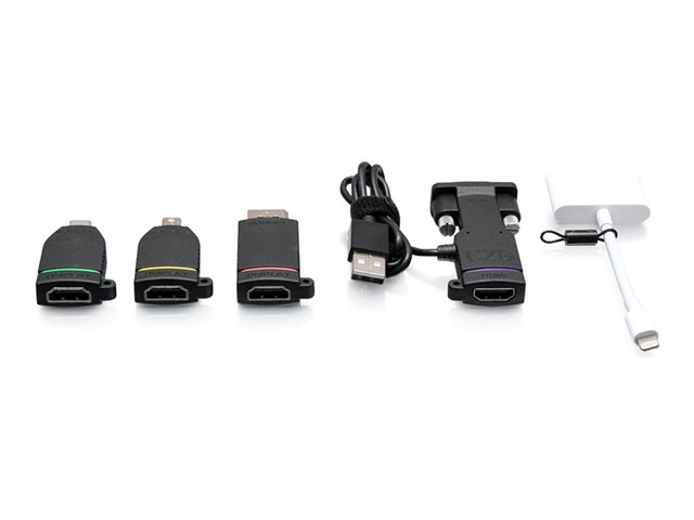 C2G Retractable Table Box Mount 4K HDMI Adapter Ring with Color Coded Mini DisplayPort, DisplayPort, USB-C, Lightning, and VGA - Videosovitinpakkaus - musta - 4K-tuki C2G29893