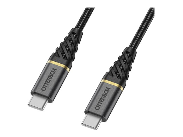 OtterBox Premium - USB-kaapeli - 24 pin USB-C (uros) to 24 pin USB-C (uros) - USB 2.0 - 3 A - 1 m - tuki virransyötölle - glamour-musta 78-52677