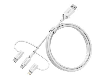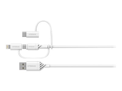 OtterBox Standard - USB-kaapeli - USB (uros) to Micro-USB Type B, Lightning, 24 pin USB-C (uros) - USB 2.0 - 3 A - 1 m - pilviunelman valkoinen 78-52686