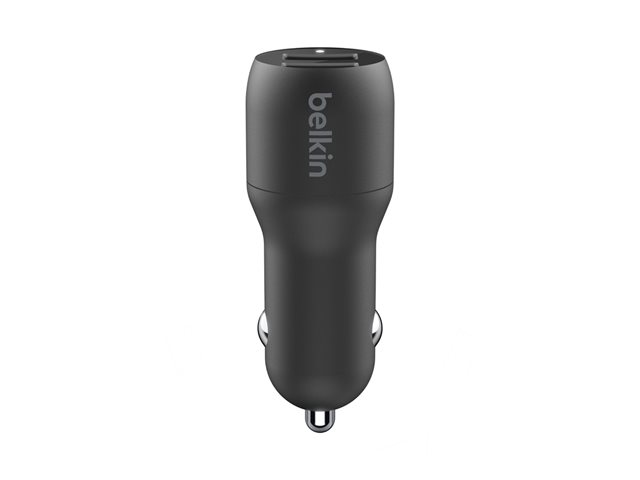 Belkin BoostCharge Dual Charger - Auton virtasovitin - 24 watti(a) - 4.8 A - 2 lähtöliittimet (USB) - johdossa: USB-C - musta CCE001BT1MBK