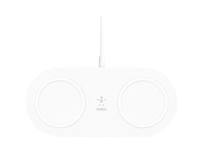 Belkin BoostCharge Dual - Langaton latausalusta + AC-virtasovitin - 15 watti(a) - valkoinen malleihin Apple iPhone 11, 11 Pro, 11 Pro Max, 8, 8 Plus, X, XR, XS, XS Max; Samsung Galaxy Note10, Note10+, S10, S10+, S10e