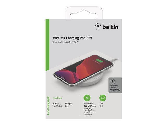 Belkin BoostCharge - Langaton latausalusta + AC-virtasovitin - 15 watti(a) - QC 3.0 - valkoinen WIA002VFWH