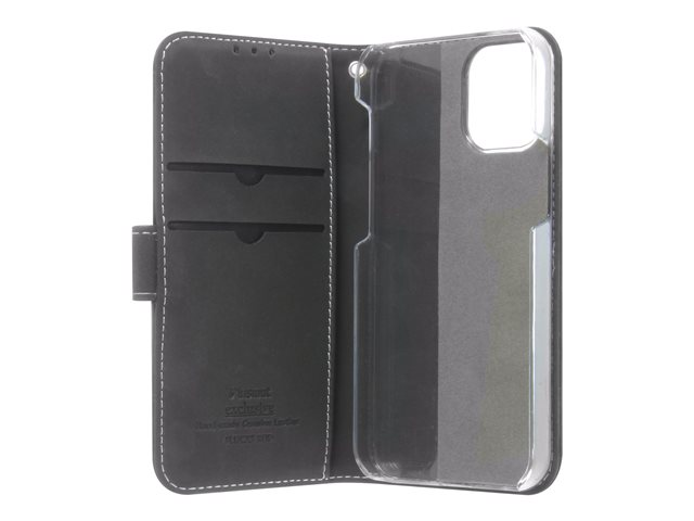 Insmat Exclusive Flip Case - Läppäkansi matkapuhelimelle - aito nahka, paperi, pahvi, polykarbonaatti, alumiinifolio - musta malleihin Apple iPhone 12 mini