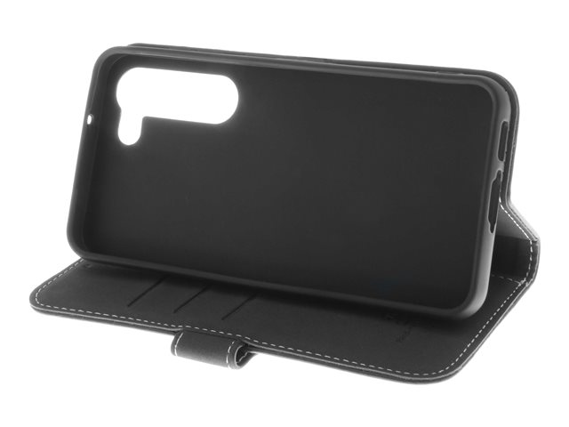 Insmat Exclusive - Läppäkansi matkapuhelimelle - aito nahka, paperi, polyuretaani, pahvi, puuvilla, alumiinifolio, pronssi, termoplastinen polyuretaani (TPU) - musta malleihin Samsung Galaxy S23+