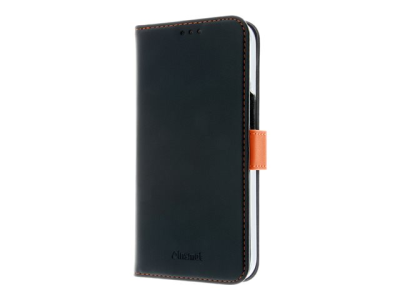 Insmat Exclusive - Läppäkansi matkapuhelimelle - aito nahka, polykarbonaatti, kartonki + paperi + alumiinifolio - musta, oranssi malleihin Apple iPhone 15
