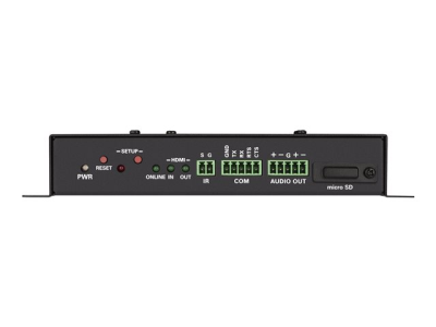 | Päätteet | (1) x HDMI-tulo - 19-nastainen HDMI A-tyyppi (1) x HDMI ulostulo - 19-nastainen HDMI A-tyyppi (1) x USB 2.0 - 4-nastainen USB tyyppi A (1) x USB 3.0 - 9 pin USB Type A (1) x USB 3.0 - 9 pin USB Type B (2) x verkko - RJ-45 (1) x infrapunalähtö - 2-nastainen päätelohko (1) x sarja - 5-nastainen päätelohko (1) x tasapainotettu äänilähtö - 5-nastainen päätelohko - stereo |