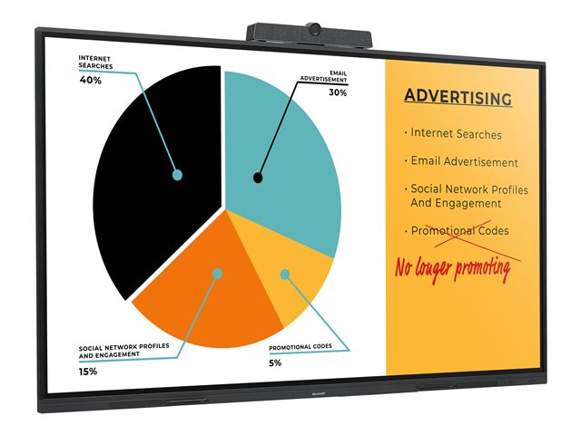 | Sisältyvät lisävarusteet | Kaukosäädin, 2 sähköistä kynää, kaapelikiristimet |