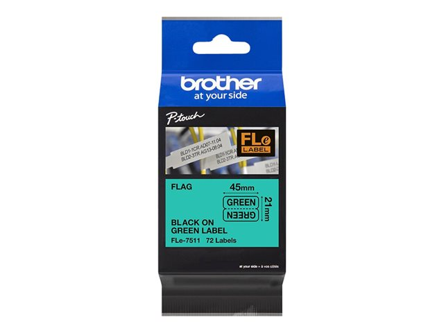 Brother - Polyesteri - musta vihreällä - 21 x 45 mm 72 tarra (tarrat) (1 rulla (rullaa) x 72) diecut-etiketit malleihin P-Touch PT-D800W, PT-P900W, PT-P950NW FLE7511