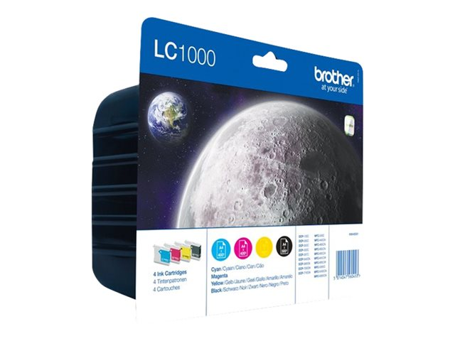 Brother LC1000 Value Pack - 4 pakettia - musta, keltainen, sinivihreä, magenta - alkuperäinen - kuplapakkaus - mustepatruuna malleihin Brother DCP-130, 330, 350, 353, 540, 560, 750, 770, MFC-5460, 5860