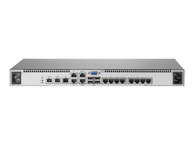 | Liitännät | 16 x KVM RJ-45 1 x RJ-45 hallinta 1 x näppäimistö (USB) Type A 1 x hiiri (USB) Type A 1 x VGA HD-15 1 x LAN RJ-45 4 x USB Type A |