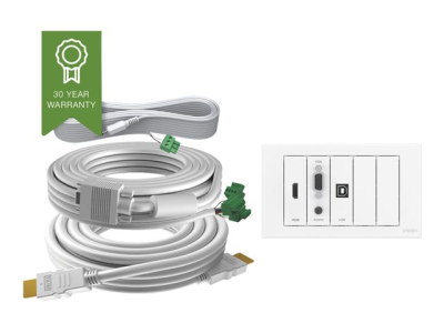 VISION TechConnect 3 Wall-Mount Faceplate Package - Modulaarisen laitteiston levysarja pikakiinnittimillä ja kaapeilla - HD-15, miniliitin: stereo, 3,5 mm, HDMI, USB Tyyppi B - mattavalkoinen - 2-moduuli