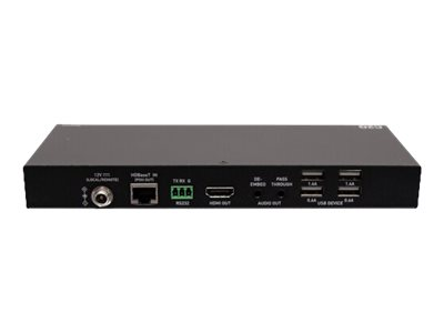 | Liitännät | 1 x HDMI (tulo) - 19 nastan HDMI Tyyppi A naaras 1 x HDBaseT (lähtö) - RJ-45 naaras 1 x RS-232 (läpimeno) - 3 nastan Phoenix naaras 1 x audio (tulo) - puhelin 3,5 mm naaras 1 x audio (lähtö) - puhelin 3,5 mm naaras 1 x USB 2.0 (host) - Type B naaras 1 x HDBaseT (tulo) - RJ-45 naaras 1 x HDMI (lähtö) - 19 nastan HDMI Tyyppi A naaras 1 x RS-232 (läpimeno) - 3 nastan Phoenix naaras 1 x audio (lähtö (läpivienti)) - puhelin 3,5 mm naaras 1 x audio (lähtö) - puhelin 3,5 mm naaras 4 x USB 2.0 - Type A naaras |