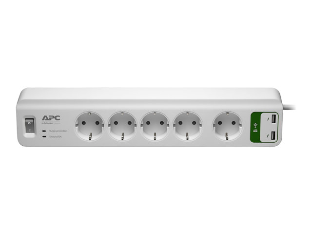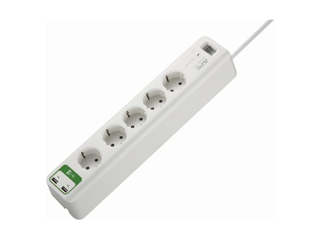 APC SurgeArrest Essential - Ylijännitesuoja - Vaihtovirta 230 V - 2300 watti(a) - lähtöliittimet: 5 - 1.83 m johto - Saksa - valkoinen